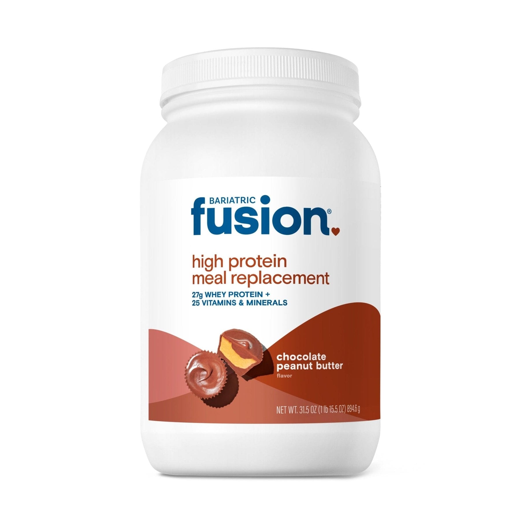 Bariatric Fusion Chocolate Peanut Butter High Protein Meal Replacement provides essential daily protein for bariatric patients. Our delicious whey protein powder is low-calorie, high-protein, high-fiber, and low-carbohydrate. It blends quickly into a low-fat protein shake option for bariatric patients requiring a complete protein supplement before and after weight loss surgery. This lactose-free bariatric protein powder delivers all your essential amino acids in 27 grams of protein per serving to support muscle mass, healing and recovery, healthy metabolism, satiety, and weight management.†*